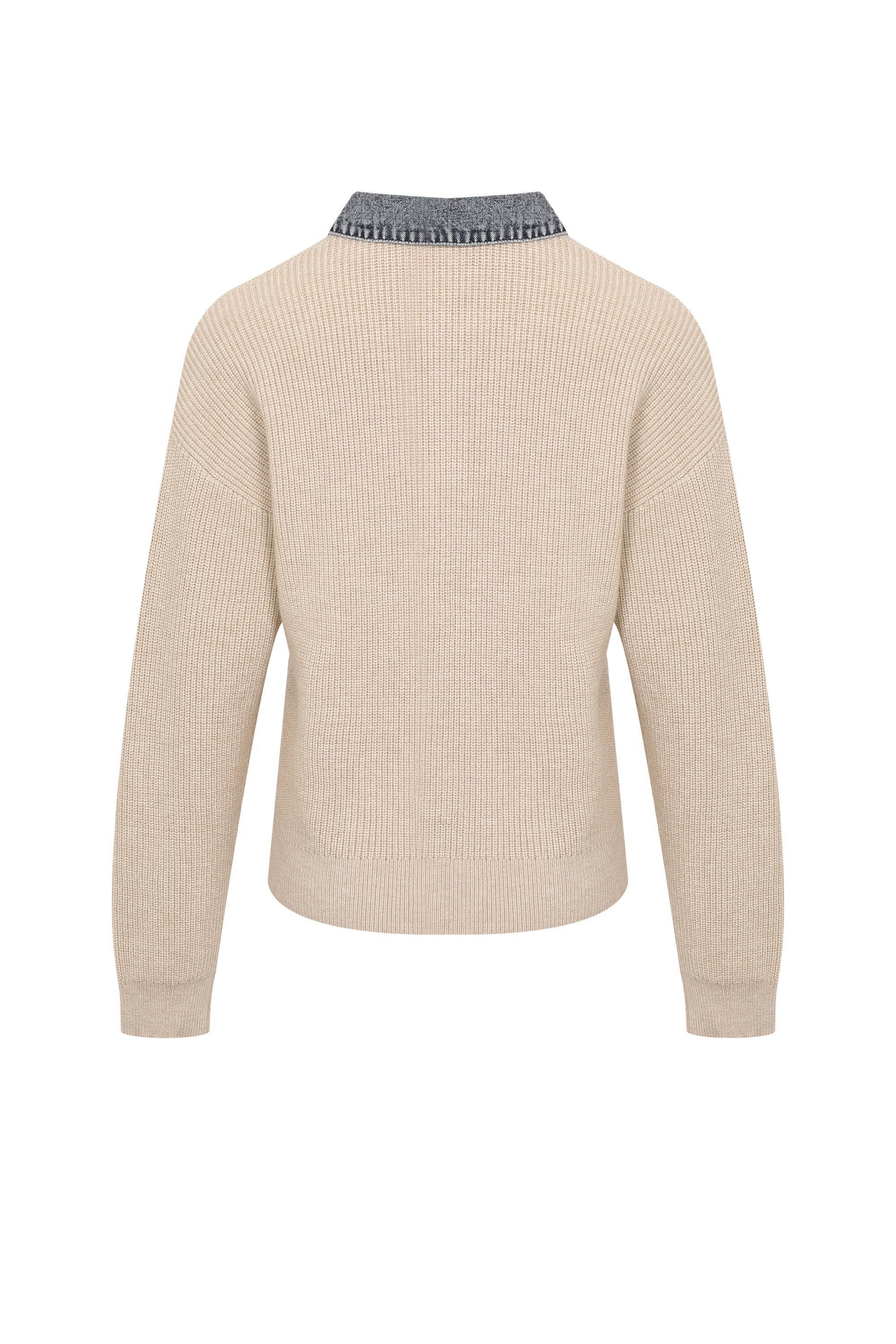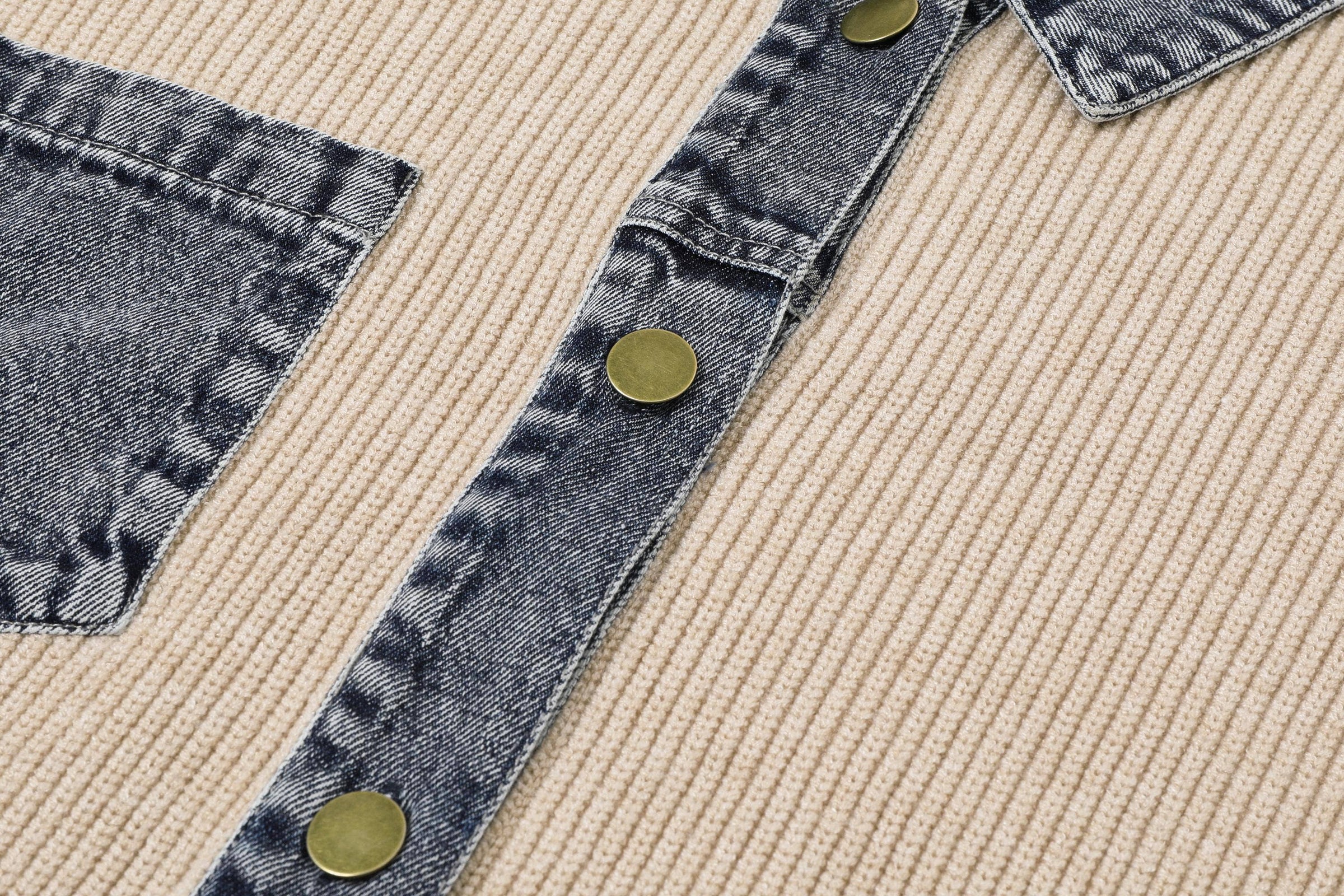 JACKET - KNIT - DENIM CONTRAST - BUTTON DOWN - COLLAR - POCKET