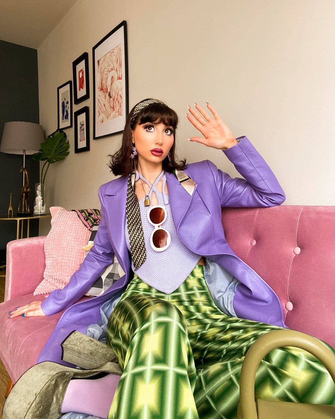 * As a vest: loosely worn over the shoulders, framing a top or jacket.